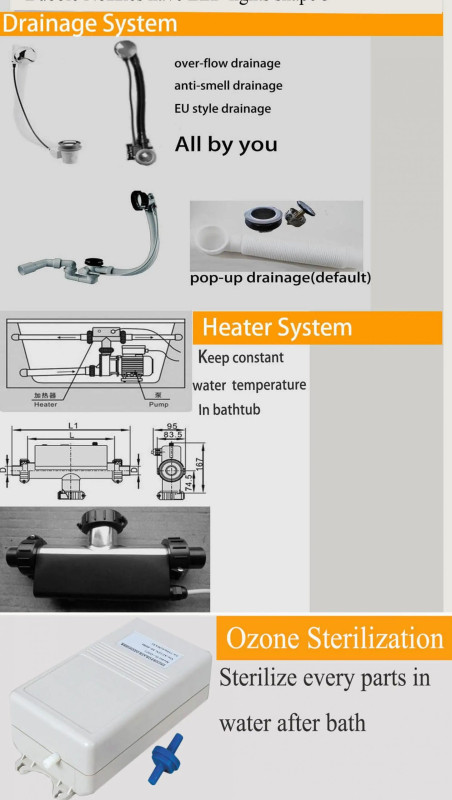 holder, stainless steel handles, seat, faucets, easy clean drain, Jacuzzi,